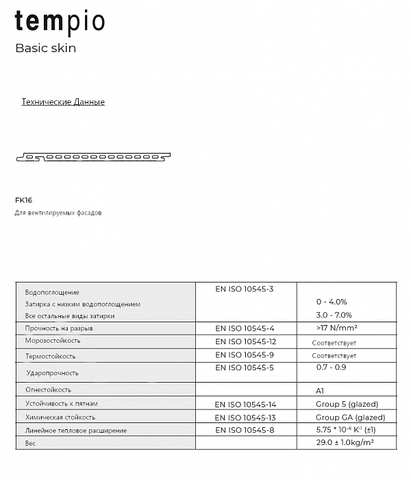 Керамическая плитка для вентилируемого фасада, система FK-1BA-5/16, Tempio