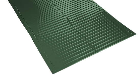 Зеленый цвет, полученный благодаря ФЭЗ-покрытию, не только украшает крышу, но и защищает ее от ультрафиолетовых лучей и атмосферных осадков. Это делает ребристый желобок не только функциональным, но и эстетически привлекательным элементом кровельной системы.