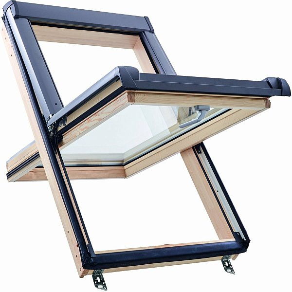 Окно R45 Н200 с термоблоком, 65х118 см, из дерева (однокамерное, среднеповоротное), Roto