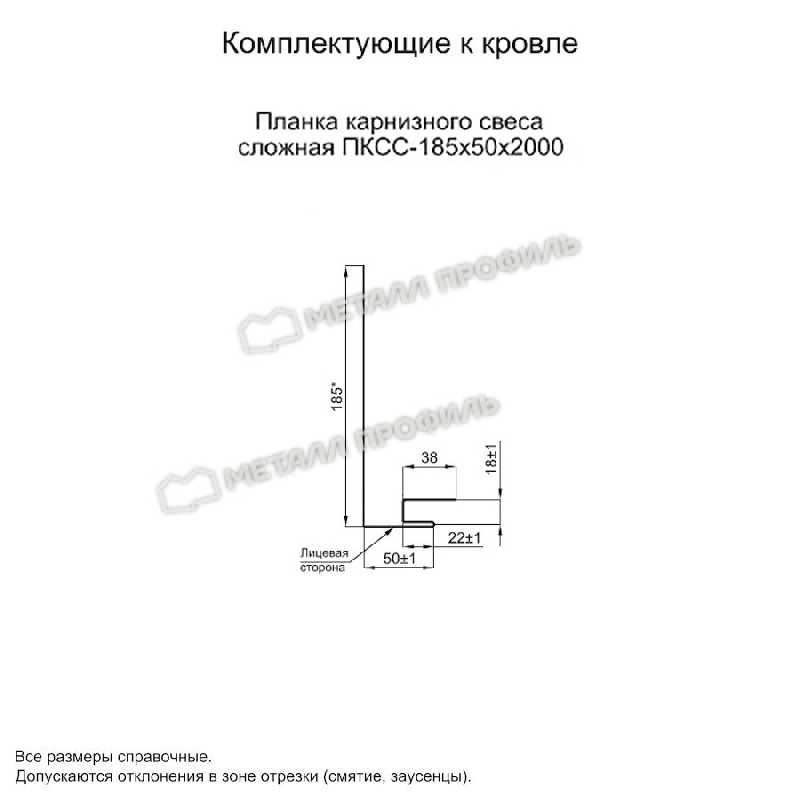 Планка карнизного свеса сложная 185х50х2000 (ПЭ-01-9006-0.45)
