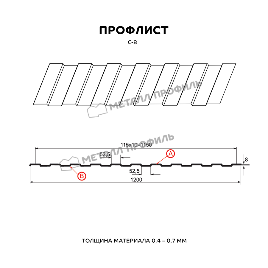 Профлист Металл Профиль С-8 0,7 Полиэстер RAL 7024 Серый графит | A