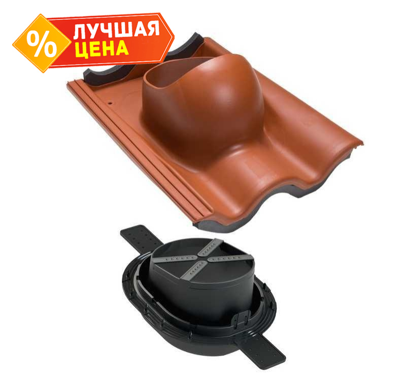 Проходной элемент для цементно-песчаной черепицы. Заменяет одну двухволновую черепицу шириной 330 мм и высотой волны 27 -40 мм. В комплект входит двухкомпонентный 2K -уплотнитель гидрозатвора, гарантирующий полную герметичность прохода через гидрозащитную пленку. Устанавливается при монтаже и на готовую кровлю.